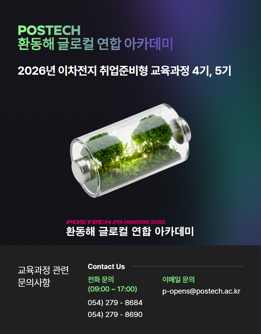 - POSTECH 및 아카데미 분원 장비 인프라를 활용한 이차전지 직무역량강화 실습
